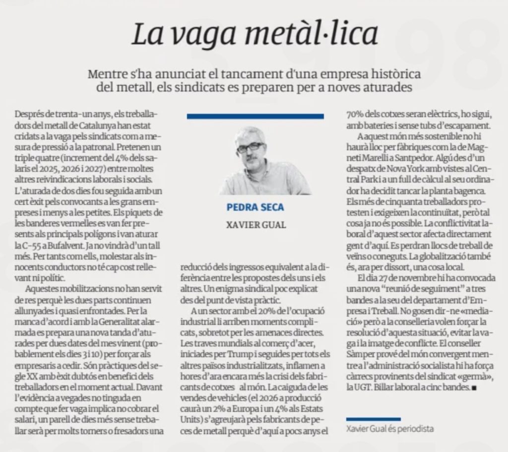 La vaga metàl·lica by xaviergual · 24 de novembre de 2025 Article publicat a la secció “Pedra seca” del diari Regió7