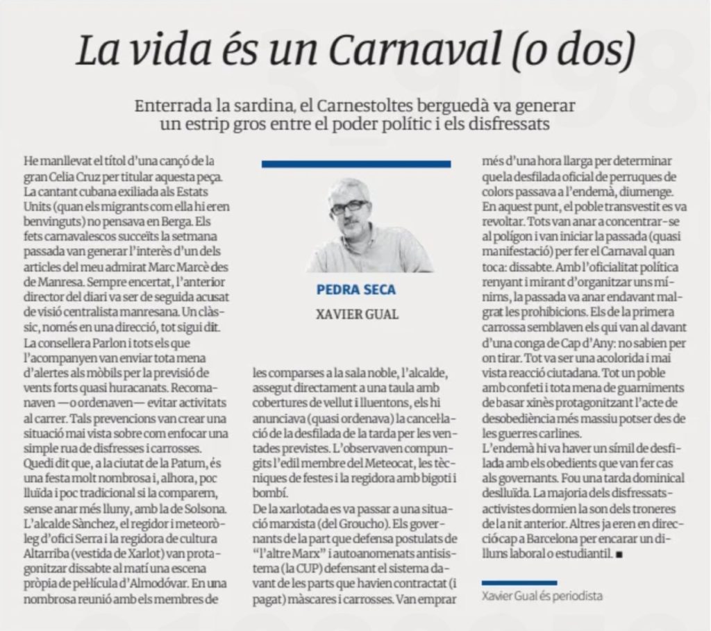 La vida és un Carnaval (o dos) by xaviergual · Published 22 de febrer de 2026 · Updated 22 de febrer de 2026 Article pulbicat a la secció “Pedra seca” del diari Regió7 (foto: XXSS)