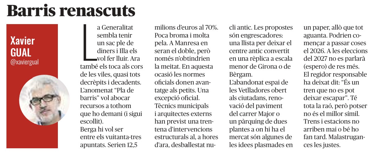0 Articles als mitjans / Treballs de periodisme 9 de novembre de 2025 by xaviergual · Published 9 de novembre de 2025 Barris renascuts