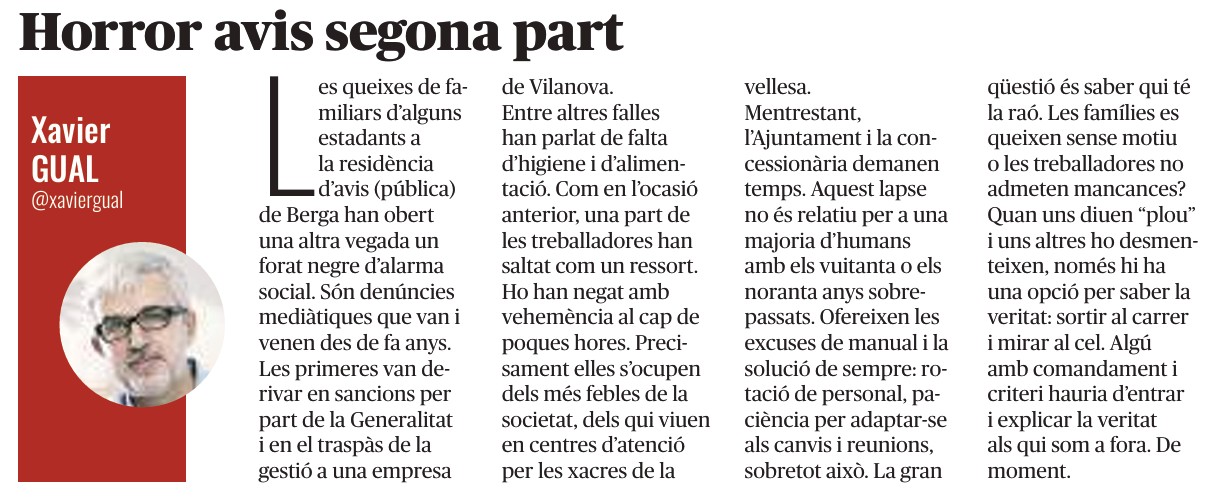0 Articles als mitjans / Observació social - crítica / Pedra seca / Treballs de periodisme 5 de setembre de 2020 by xaviergual · Published 5 de setembre de 2020 El silenci de la vellesa